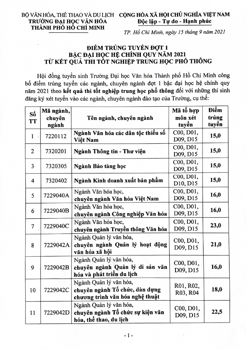 06.02.2026 Trường Đại học Văn hóa TP. Hồ Chí Minh Thông báo thông tin tuyển sinh trình độ đại học chính quy năm 2026