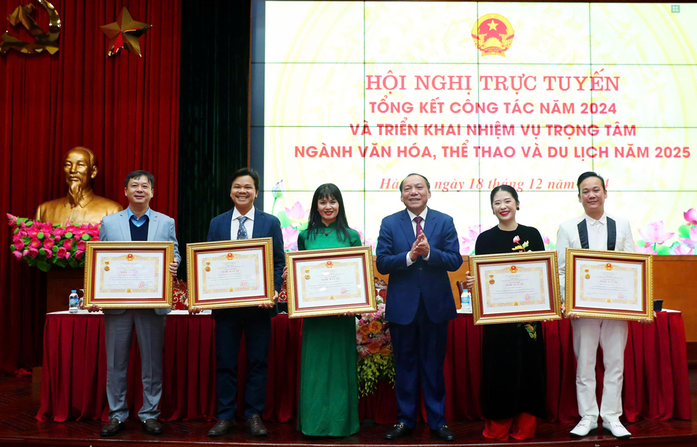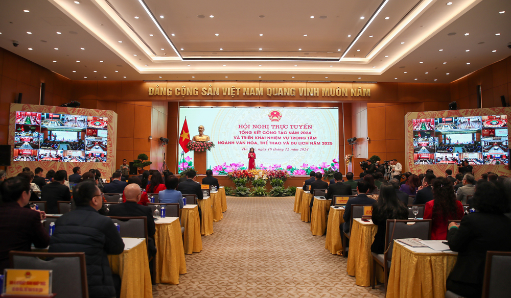 Toàn cảnh Hội nghị trực tuyến tổng kết công tác năm 2024 và triển khai nhiệm vụ trọng tâm ngành Văn hóa, Thể thao và Du lịch năm 2025 tại trụ sở Văn phòng Chính phủ (Nguồn: toquoc.vn)