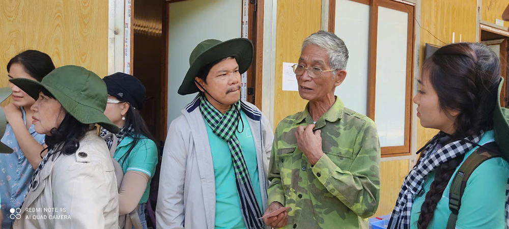 Đạo diễn Hoàng Duẩn động viên bà con Làng Nủ trong một chuyến về nguồn do Thành Uỷ Thành phố Hồ Chí Minh tổ chức vào tháng 11/2024.