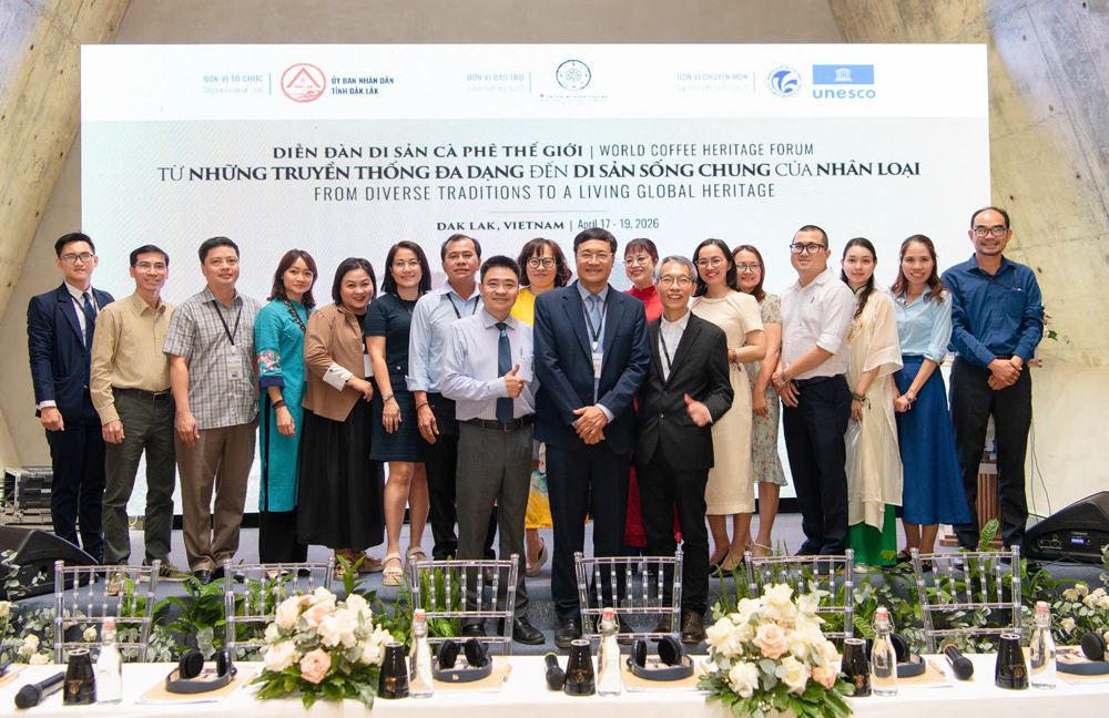 VHSO - Từ ngày 17 đến 19/4/2026, tại Bảo tàng Thế giới Cà phê (Buôn Ma Thuột, tỉnh Đắk Lắk), Diễn đàn Di sản Cà phê Thế giới đã diễn ra, quy tụ đông đảo các nhà quản lý, học giả, chuyên gia quốc tế, doanh nghiệp và đại diện cộng đồng địa phương. Với chủ đề “Từ những truyền thống đa dạng đến di sản sống chung của nhân loại”, sự kiện không chỉ mang ý nghĩa học thuật mà còn góp phần định vị cà phê như một giá trị văn hóa toàn cầu trong bối cảnh hội nhập. Diễn đàn là kết quả phối hợp giữa UBND tỉnh Đắk Lắk, Tập đoàn Trung Nguyên Legend và UNESCO tại Việt Nam, với sự tham gia tư vấn chuyên môn của Trường Đại học Văn hóa TP. Hồ Chí Minh. Đây được xem là bước đi quan trọng trong việc hệ thống hóa tri thức và thực hành văn hóa cà phê dưới góc nhìn di sản.